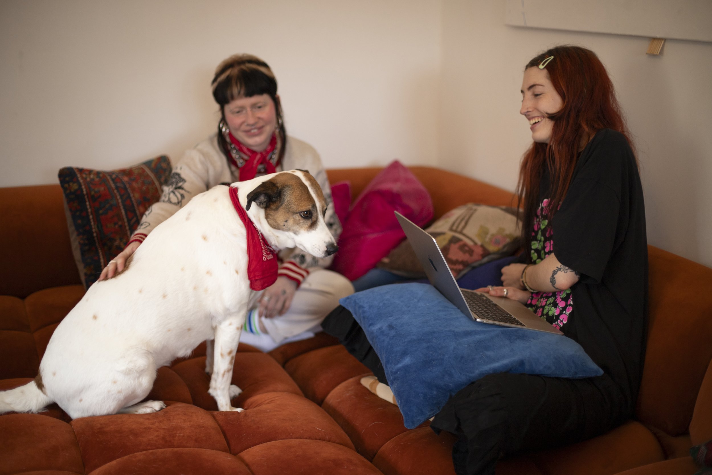Last week we sat down on a giant orange sofa with Amy, founder of latexwear brand Aimless Gallery, to chat with them about how they established their brand. Little did we know we were in for a treat with a peek at their current project in the studio, and many (many) boops from their pooch Spot.